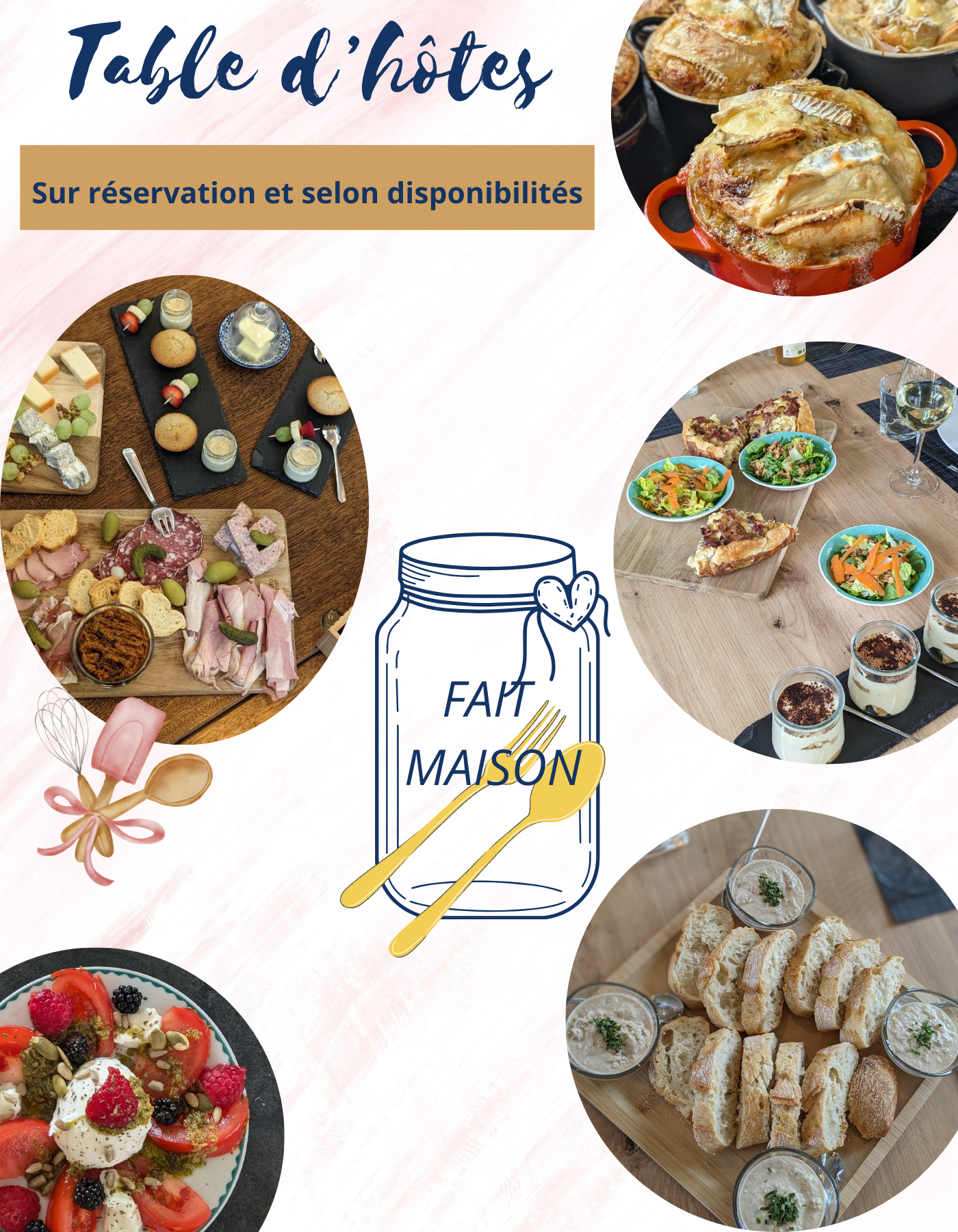 Prolonger votre journée en profitant de notre table d’hôtes, où chaque plat est soigneusement préparé par nos soins. Vous pourrez déguster des recettes généreuses et savoureuses dans une ambiance conviviale.