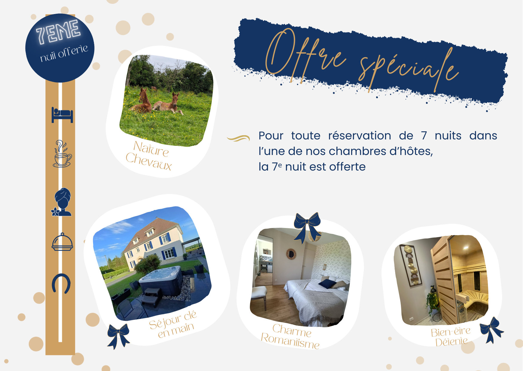Pour toute réservation de 7 nuits dans l’une de nos chambres d’hôtes, la 7ᵉ nuit vous est offerte
